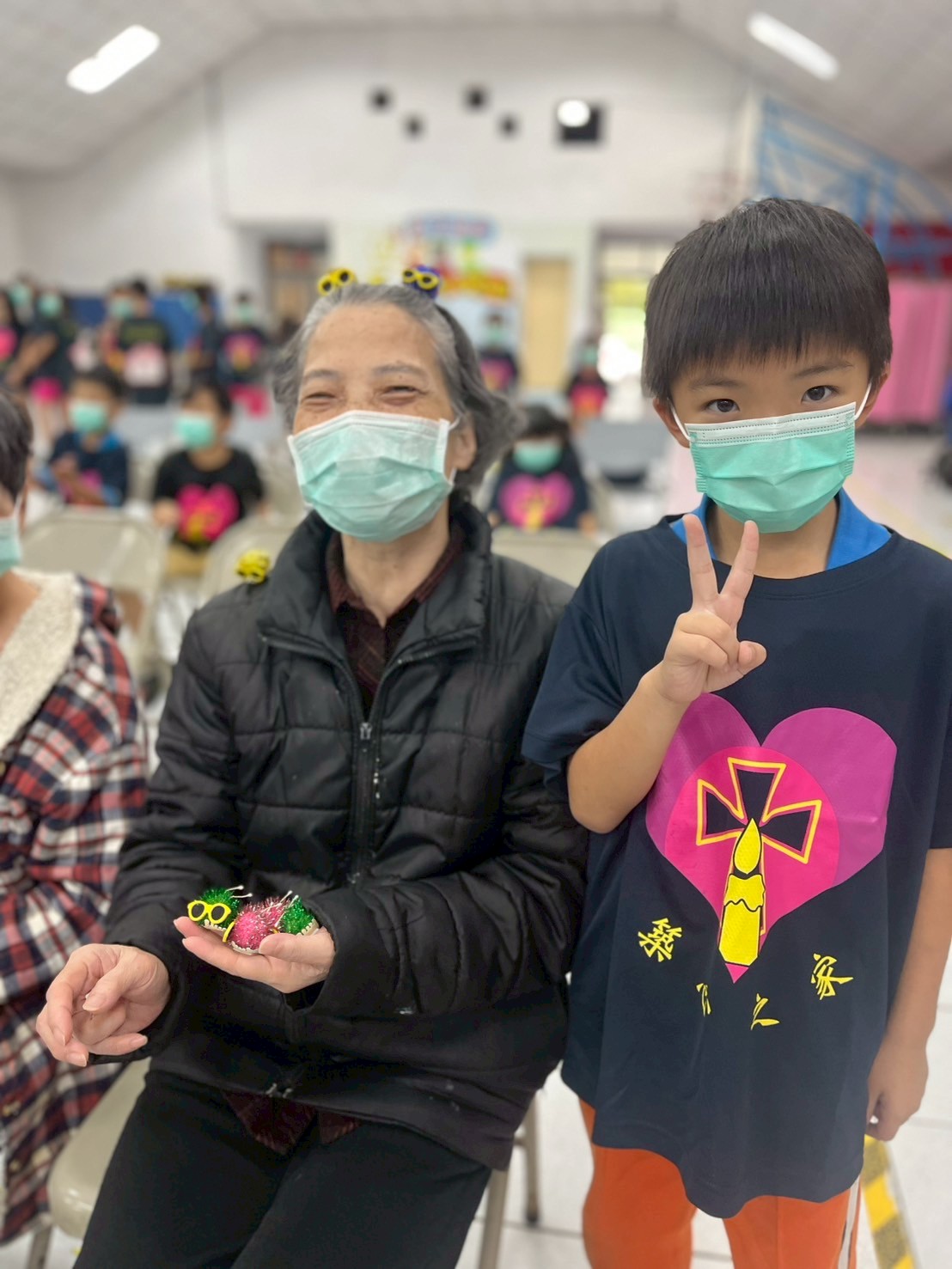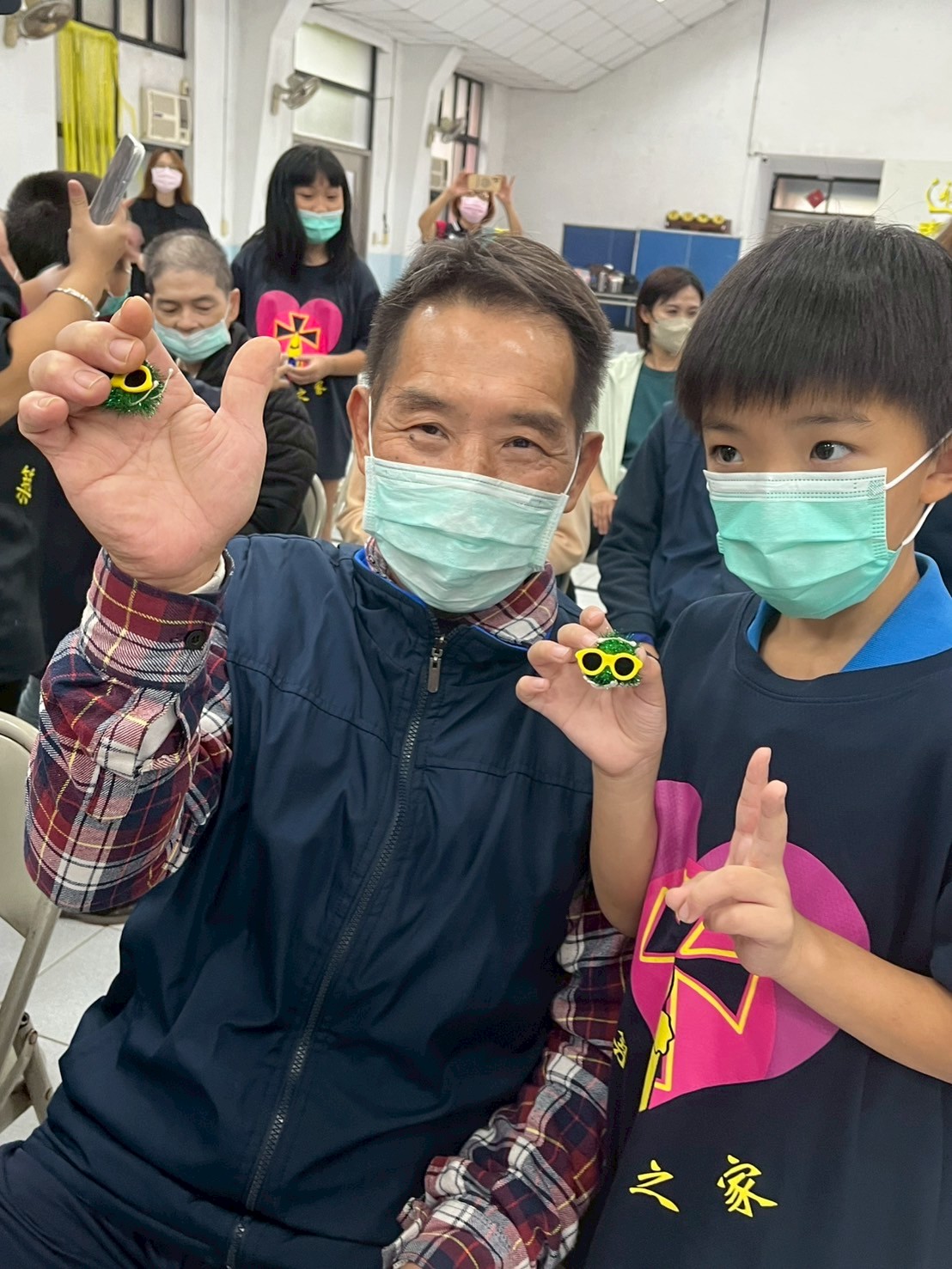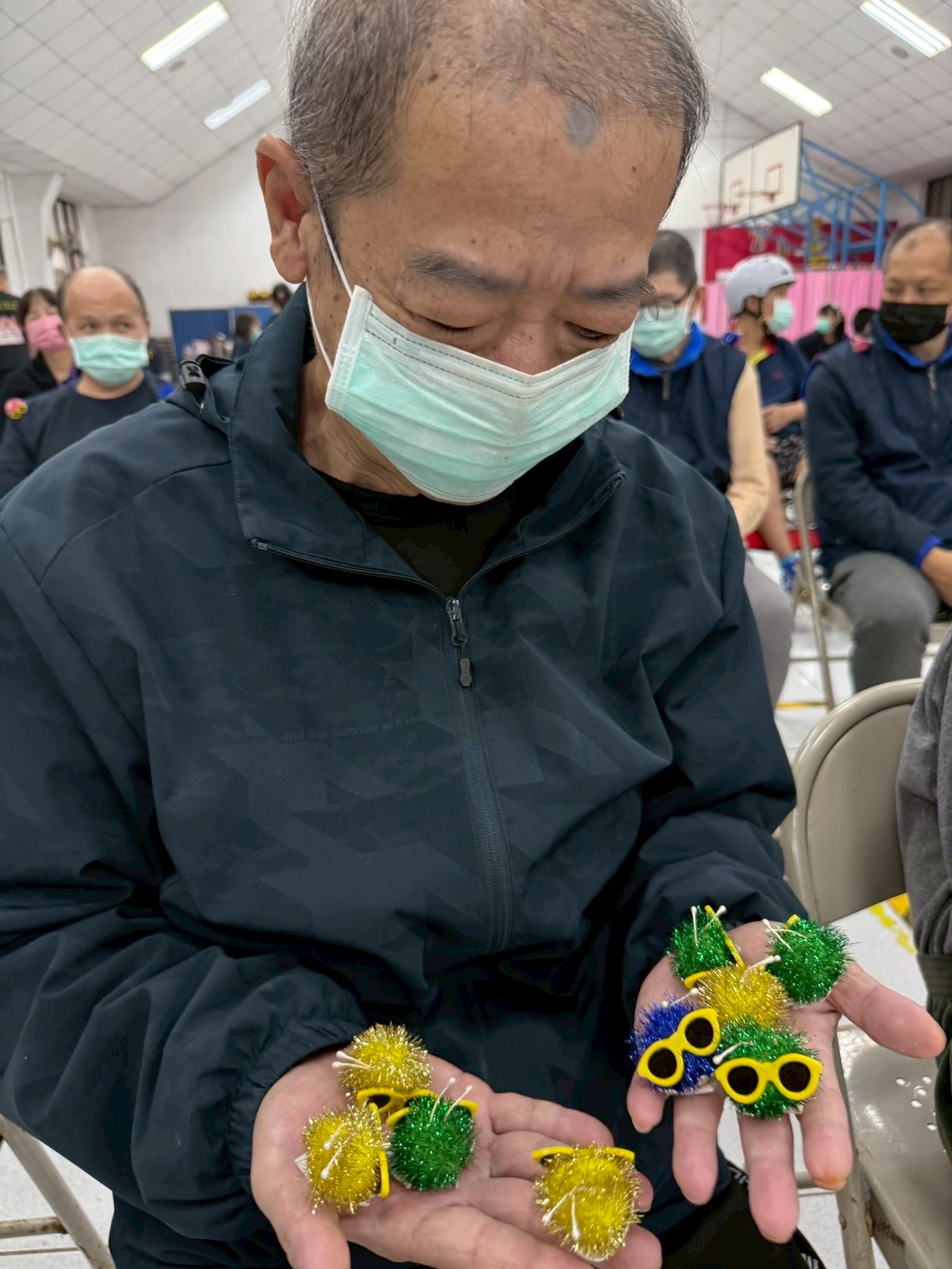 🐋活動尾聲,小朋友親手製作的小鯨魚貼貼溫馨登場,象徵幸福與祝福,分送給每一位住民。有位住民更將小鯨魚別在髮箍上,創造出可愛新造型,笑容燦爛,幸福滿滿!💖🎁